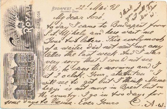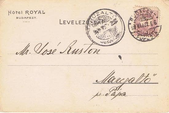 Amikor ez a képeslap elém került, még nem sejtettem, hogy egyike lesz azoknak, amelyek időutazásra késztetnek. Elsőre azért találtam érdekesnek, mert ezt a változatot nem ismertem, és mert a Bruchsteiner– nyomdában készült Royal- szállós anzix mindenképpen a korai magyar reklámlapok közé tartozik: