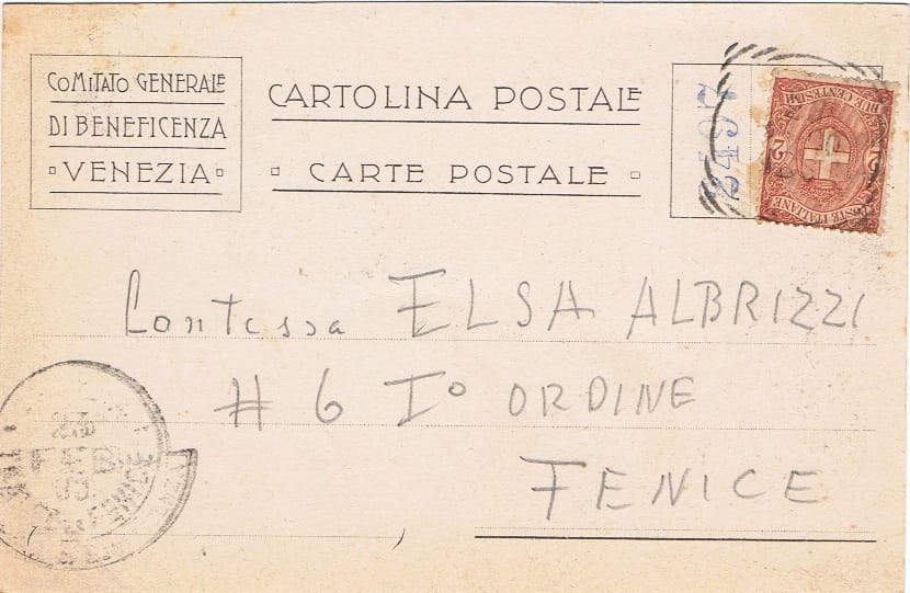 A felvétel Rómában készült, 1903 május 3-án, s a Vatikán felé poroszkáló császárt nagyobbik fia, Vilmos porosz királyi herceg társaságában ábrázolja. A XIII. Leó pápával létrejött találkozóval a világsajtó részletesen foglalkozott, nekem azonban egészen más dolog keltette fel érdeklődésemet: a képeslap küldőjének és címzettjének személye… A címzett: Elsa Albrizzi grófné, Velence, Albrizzi palota; a küldő pedig nem más, mint tulajdon lánya, Vittoria, becenevén: Dada. Mindketten igazi hírességek voltak a maguk idejében, jó értelemben persze, és mindketten másért.