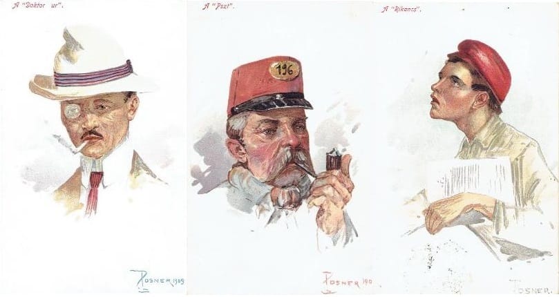 A „Posner 1909” – jelű illusztrátorra egy Újházi Edét ábrázoló képeslap kapcsán figyeltem fel, írtam is róla, és közben reménykedtem további lapjai felbukkanásában.  Az illusztrátort a portréfestőként ismert Pogány Posner Lajos (1873-1941) személyében véltem megtalálni, ennél ki is tartok, de a kiadóval kapcsolatos elméletem megdőlt, mert jelöltjeim, Kunosyék, csak 1907-ig működtek. A további tételek előcsalogatására irányuló óhajom azonban meghallgatást nyert, s így újabb három alkotással tudom súlyosbítani a Posner-feladványt:
