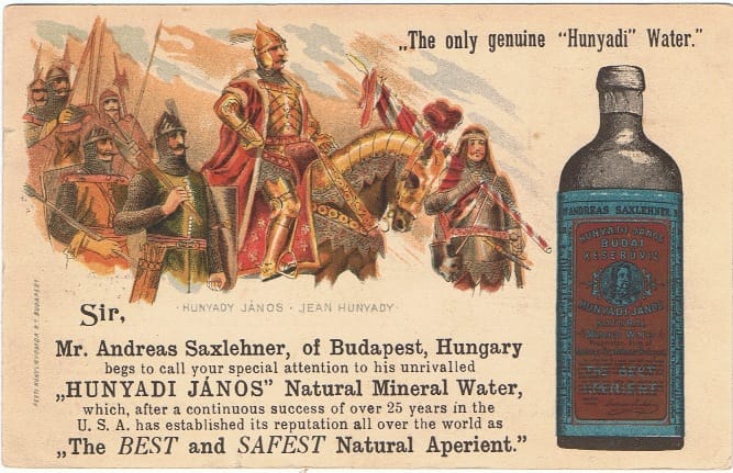 A tisztelgés, mint látható, felemásra sikeredett, mert egyesek nem átallották a kereszténység hős védelmezőjét – horribile dictu – egy bélműködést serkentő gyógyvíz népszerűsítésére felhasználni. Továbbá attól sem riadtak vissza, hogy szégyenletes mesterkedéseiket a jámbor, és jóhiszemű Újvilágra is kiterjesszék, ahogyan ezt a mi Chicagót megjárt példányunk is igazolja.