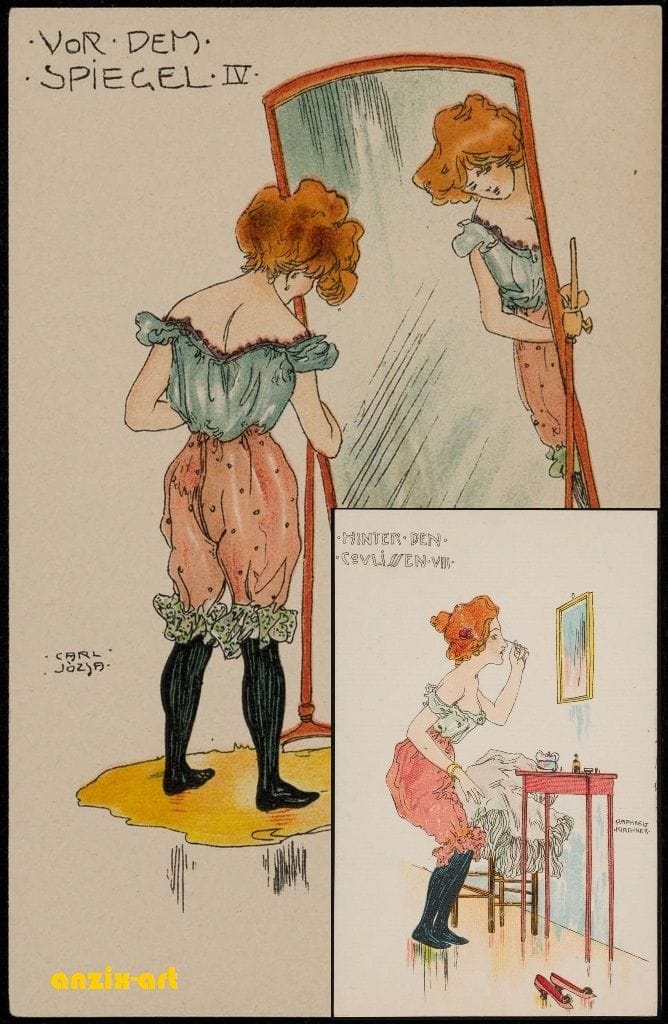 A képeslap-illusztrálást Józsa a császárvárosban kezdte, s itt barátkozott össze a a bécsi középosztálybeli Raphael Kirchnerrel (1875) is. Úgy tudni, a párizsi utazást együtt tervezgették, s ott együtt járták Montmartre kocsmáit, mulatóit, úgy, hogy néhanapján „földijük”, Mucha is csatlakozott. A párizsi kiruccanás aztán mintegy tizenöt évig tartott… Megérkezésükkor már mindketten túl voltak jó néhány sikeres képeslap sorozaton, közöttük a Philipp & Kramernél megjelent „Auf Sommerfrische” (Kirchner), illetve a Sockl-féle „Sirenen und Circen” (Józsa)-címűn. Amikor a szakszövegekben Józsáról esik szó, előbb-utóbb Kirchner neve is felmerül, mint olyan művészé, aki hatással volt Józsa stílusára. Ez többnyire evidenciaként hangzik el, bár a szakma nagyjai óvatosan fogalmaznak. Neudin például így ír: „Hatott rá Kirchner, de rajza olykor egyszerűbb, és nagyon elegáns”. A Giovanni Fanelli – Ezio Godoli szerzőpáros szerint: „Kirchner kétségtelen hatása nem gátolja Józsa Károly friss és örömteli találékonyságát”. Időnként azonban egészen durva csúsztatásokkal is lehet találkozni. Tudok olyan külföldi aukciósházról, amely a Józsa nevet – vélhetően egy magasabb ár reményében – Kirchner álneveként tünteti fel!